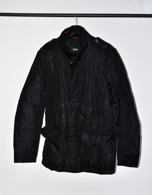 Abrigo Hugo Boss de color negro con bolsillos. Talla L (48). Segunda mano