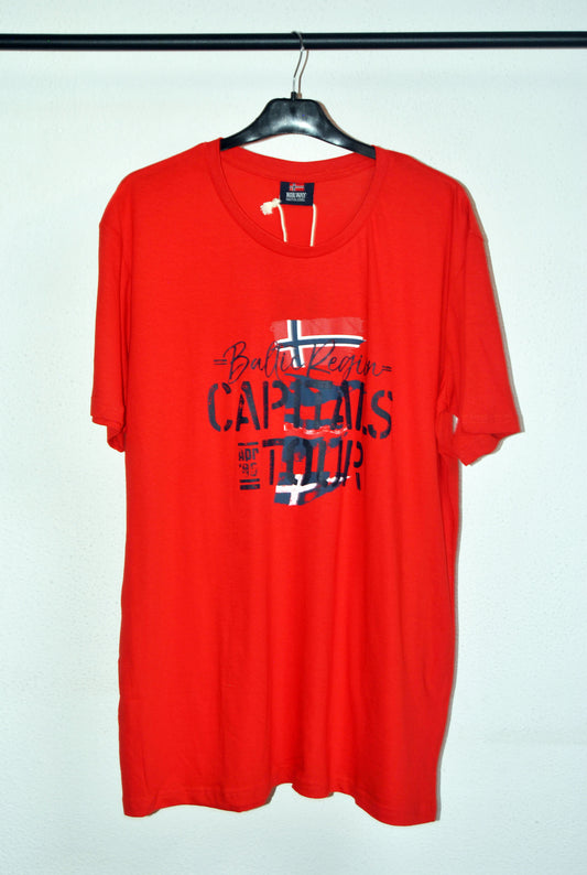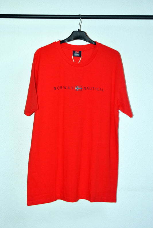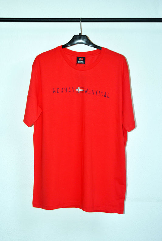 Camiseta Norway de color rojo con estampado. Talla XL.