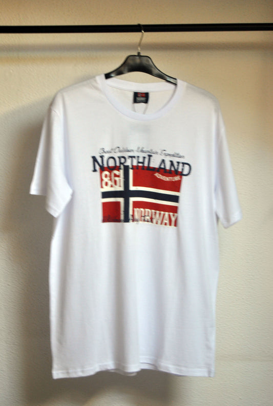 Camiseta Norway de color blanco con estampado. Talla XL.