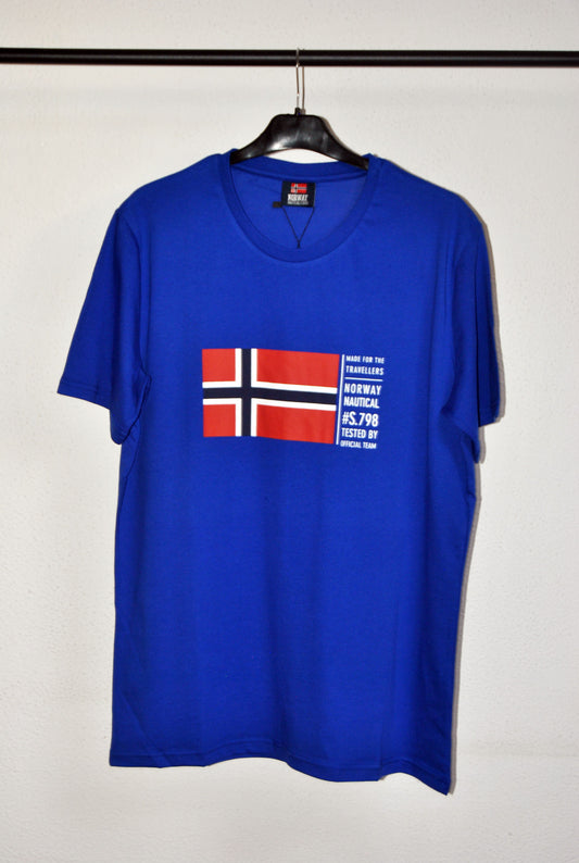 Camiseta Norway de color azul eléctrico con estampado. Talla XL.
