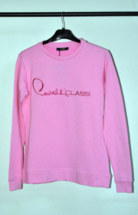 Sudadera bordada Cavalli Class de color rosa. Talla S.